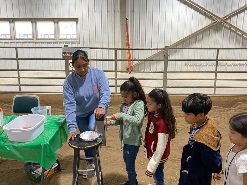 During the event, students rotated through educational booths where they learned about soybeans, cotton, and livestock and even had an opportunity to participate in a cow milking simulation of a model cow.