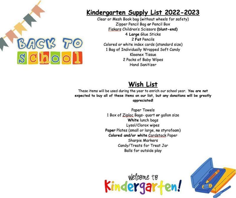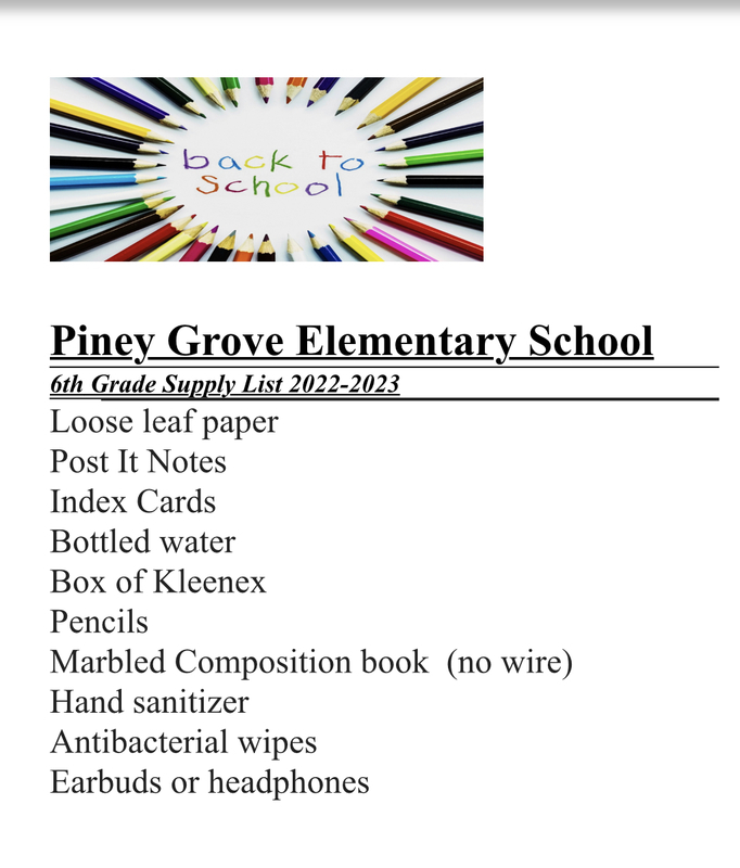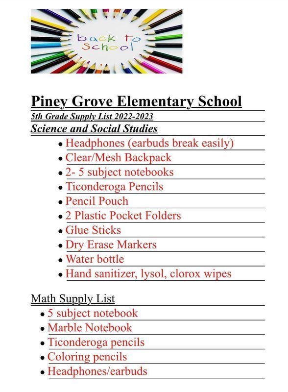 Pioneer School Supply List