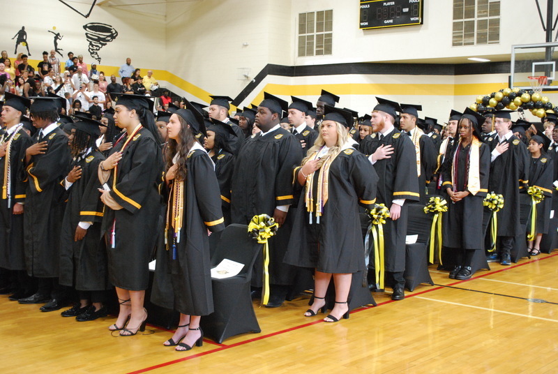 The invocation was given by Jayda Mackenzie Smith and Hannah Pearson welcomed graduates and attendees. Vanecia Fletcher gave class statistics and Lee Pate introduced commencement speaker Jonathan Grissett.