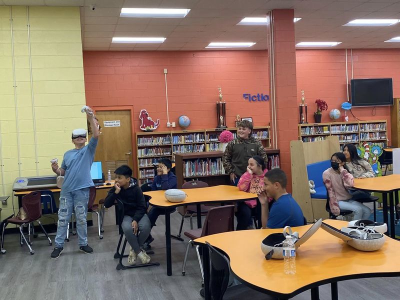 Wesley Jacobs, an English Language Arts and Social Studies teacher at the school, watched as some of his sixth-grade students participated in virtual reality simulations.