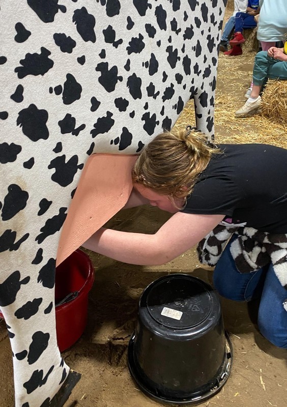 During the event, students rotated through educational booths where they learned about soybeans, cotton, and livestock and even had an opportunity to participate in a cow milking simulation of a model cow.